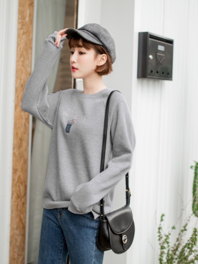 內刷毛胸前刺繡圖磨毛衛衣上衣