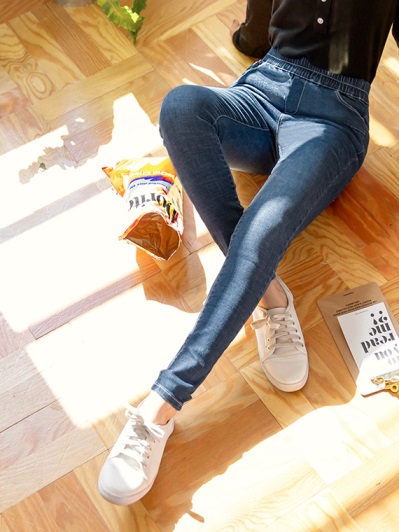 芭蕾舞褲-腰鬆緊水洗純色窄管褲