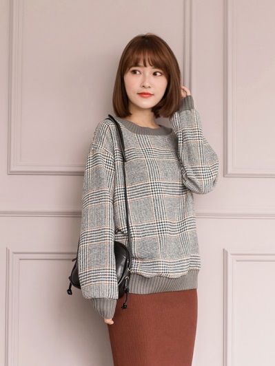 彈性羅紋滾邊格紋毛感上衣