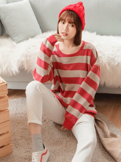 高含棉復古配色橫條紋上衣