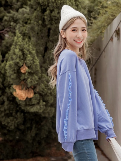時髦素面花邊袖造型上衣