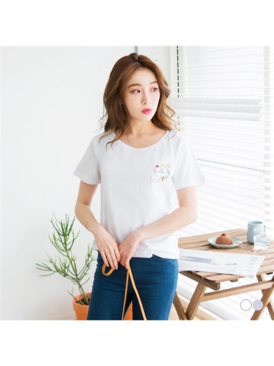 高含棉胸前花圈字母印花無印風圓領上衣.2色