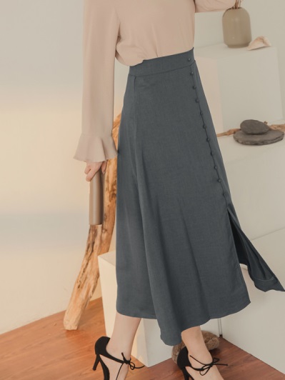 排釦設計前開衩中長裙