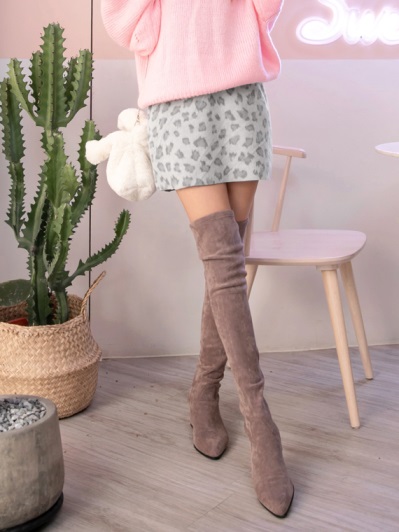 磨毛流行豹紋印花A字短裙
