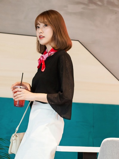 浪漫滾邊豎壓紋喇叭袖上衣