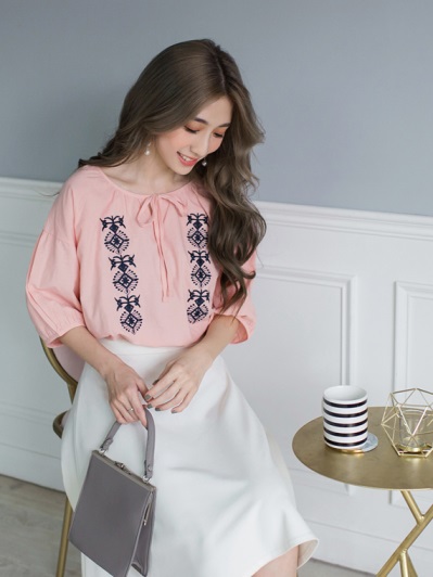 高含棉民俗花樣刺繡綁帶五分袖上衣