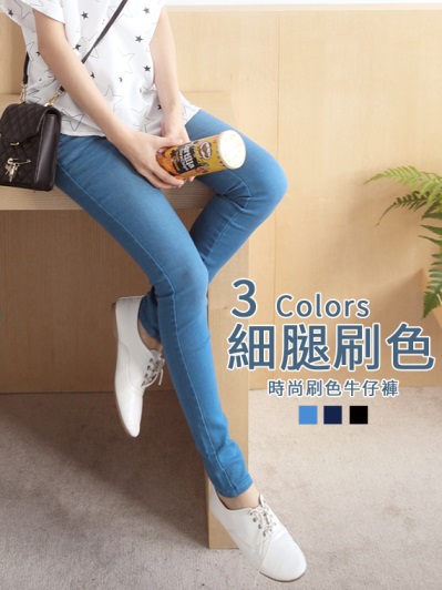 褲腳側邊拉鍊輕刷毛彈性窄管長褲.5色