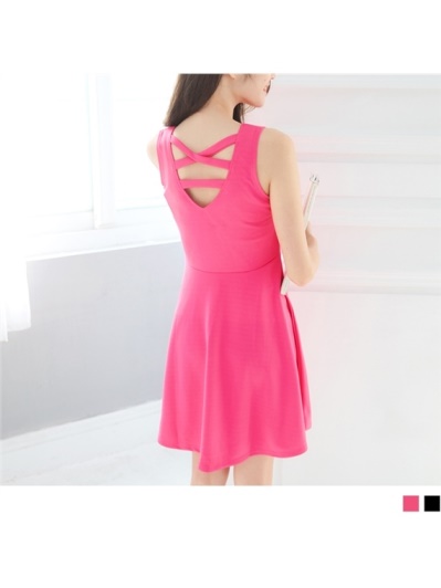 素色後背挖洞交叉設計厚雪紡背心洋裝.2色