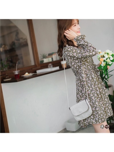 滿版花朵印花交叉綁帶領抓皺設計傘襬洋裝.2色