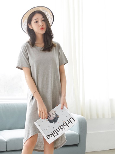 不規則鏤空露背造型純色高棉量弧襬休閒洋裝.2色