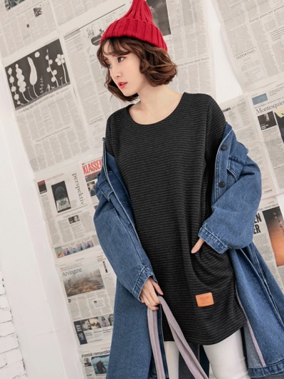台灣製造.內刷毛橫條紋長版上衣