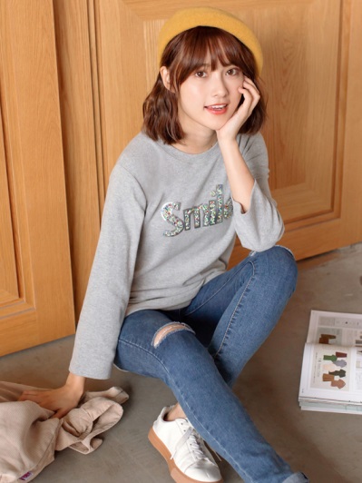 台灣製造.英文字貼鑽磨毛上衣