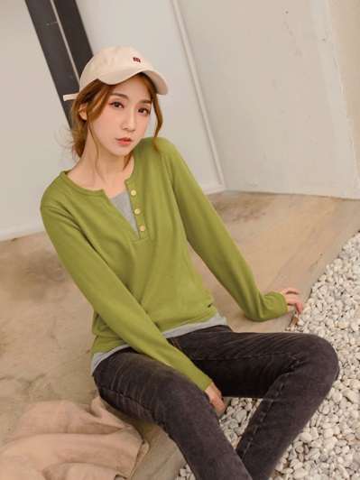 台灣製造.假兩件鈕釦裝飾磨毛上衣