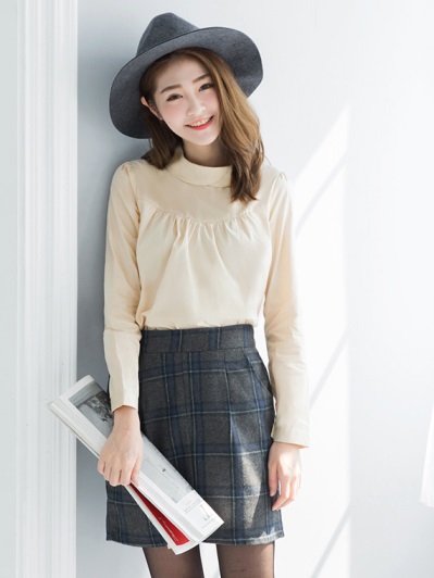 胸前抓皺後背開釦素色交叉高翻領棉感上衣.2色