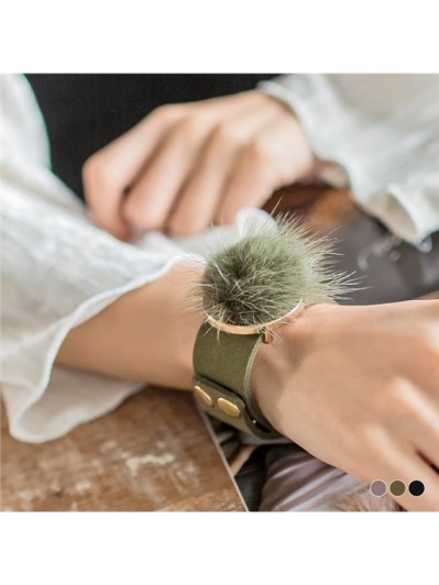 麂皮質感綴毛球金屬圓環造型手環.3色