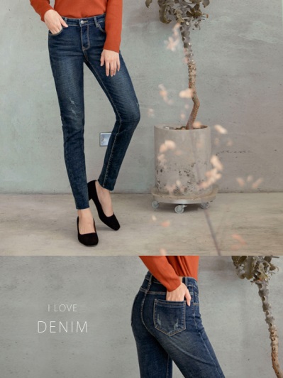 芭蕾舞褲-小抓痕內刷毛收腹牛仔褲