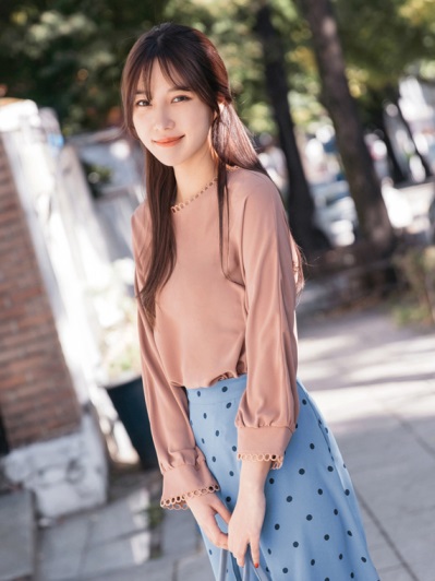 造型鏤空蕾絲滾邊純色厚雪紡上衣