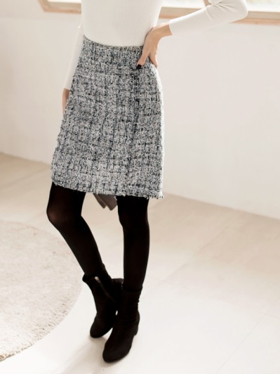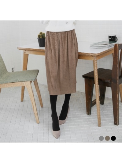 復古幾何圖側拉鍊設計燈芯絨短裙.2色