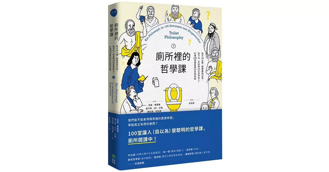「上廁所的十四分鐘,讓讀者深入淺出理解哲學題目、流派、主張和名言,這大概就是莊子說的『道在尿溺』的深度示範了吧!」──祁立峰(中興大學中文系副教授)