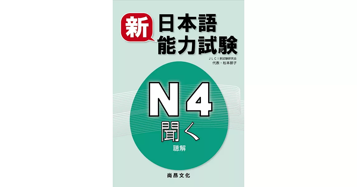 商品描述: 書名:新日本語能力試験 N4聞く(聴解),原文名稱:実力アップ!日本語能力試験N4聞く(聴解),語言:繁體中文,ISBN:9789866020872,頁數:256,出版社:尚昂文化,作者:JLCI新試験研究会,松本節子,譯者:尚昂文化編輯部,出版日期:2018/10/31,類別:語言學習