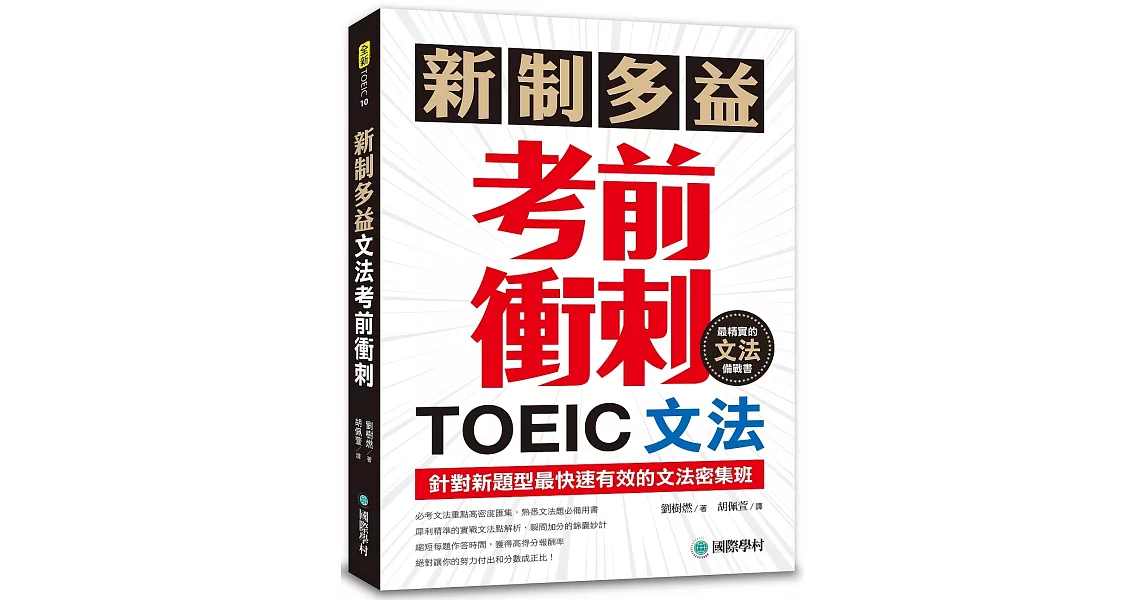 我們知道了熟悉文法題的好處,但是不是隨便一本大部頭文法典就能應付了嗎?其實每個考試都有各自著重的文法要點,如果備考還得從一片文法海中撈出考試重點,又要花時間看懂冗長敘述,那真是太浪費時間精力了!尤其多益改新制,考題訊息量翻倍,題目變得又多又複雜,熟悉多益文法題的重要性變得更加凸出,因為越能以準確、快速的方式解決文法題,就越能為其他「多篇文章」「圖表題」等複雜題型爭取更多時間!此時我們需要的不是一本從基礎慢慢論述文法道理的書籍,而是需要一本把多益考點精煉歸納,讓考生能迅速掌握,並拿到分數的書籍!《新制多益文法考前衝刺》就是這樣一本不囉嗦、不摻水的多益文法題歸納書。