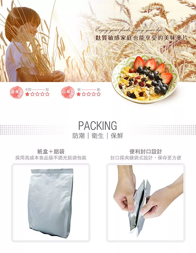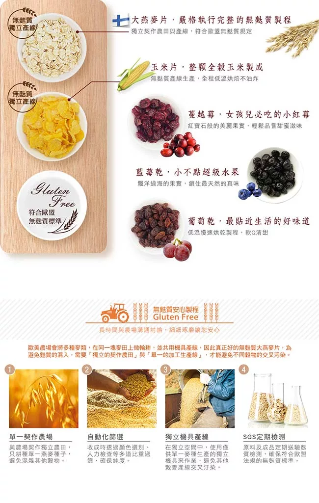 且特別從農場種植到加工過程中,嚴格執行完整的無麩質製程,
