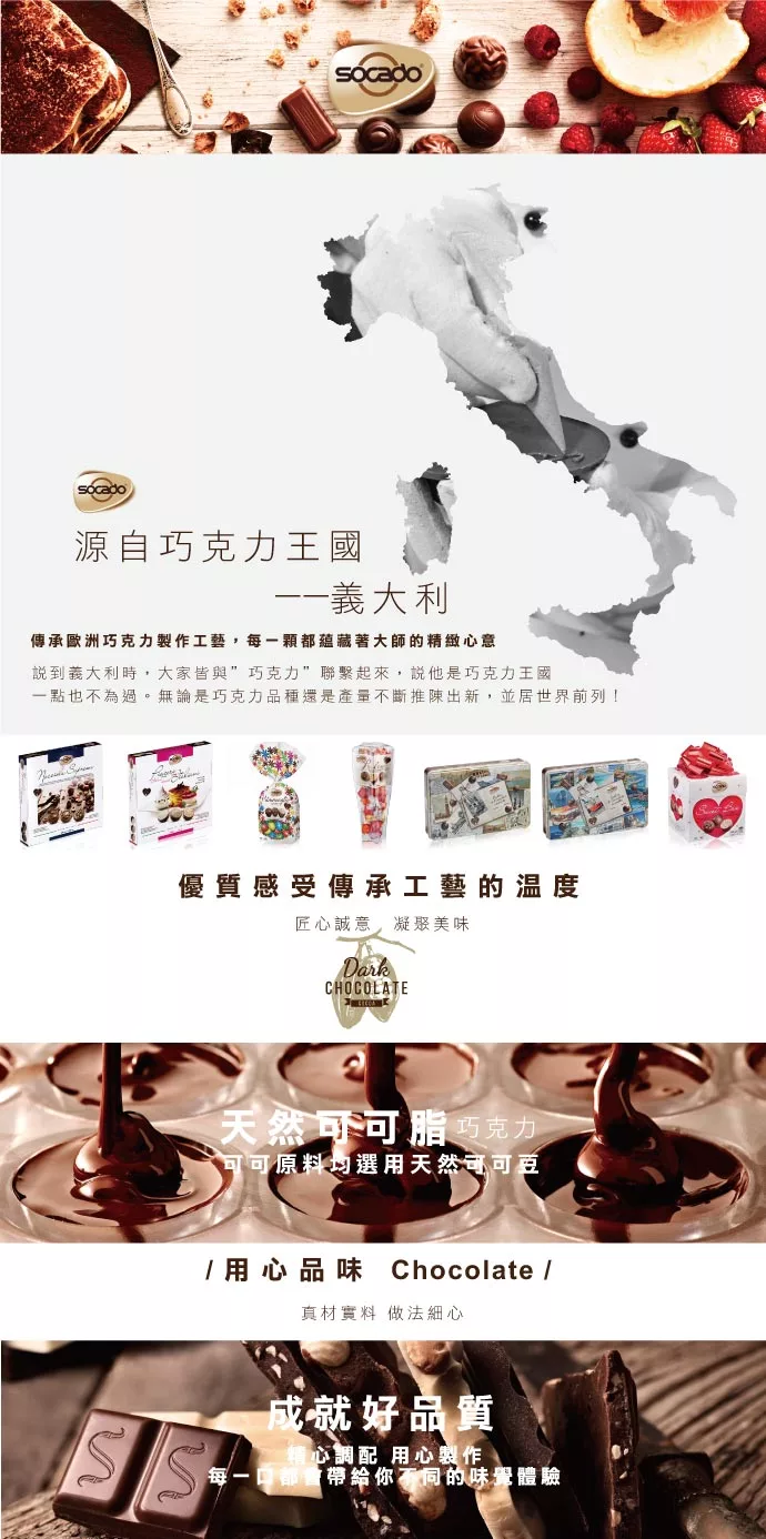 商品描述: 義大利進口苦甜巧克力入門款口感細膩濃醇黑巧克力入門首選來自夢幻國度義大利,75%是苦甜巧克力的最佳入門款香醇順口含在嘴中緩緩散開吃到巧克力最初的初心*必買原因*來自夢幻國度義大利成為你期待冬天的理由冬季特別限定 產品內容物與規格說明/保固資訊:★保存方法:避免潮濕高溫及陽光直射,開封後請儘速食用★營養標示每一份量 10公克本包裝含 10份 每份熱量———— 49.9大卡蛋白質—……