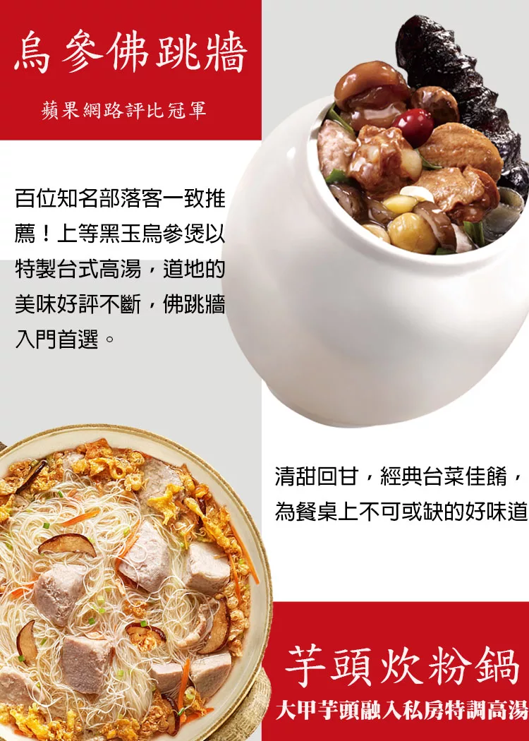 商品說明: 【老協珍】海味街開運年菜E(烏參佛跳牆+芋頭炊粉鍋)