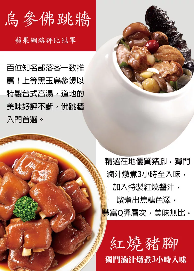 商品說明: 【老協珍】海味街開運年菜D(烏參佛跳牆+冰糖紅燒豬腳)