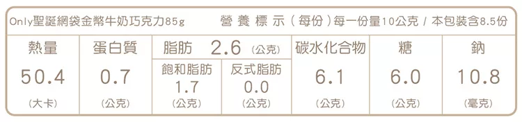 →→→→更多詳細”Only 耶誕金幣牛奶巧克力 85g”介紹請點我