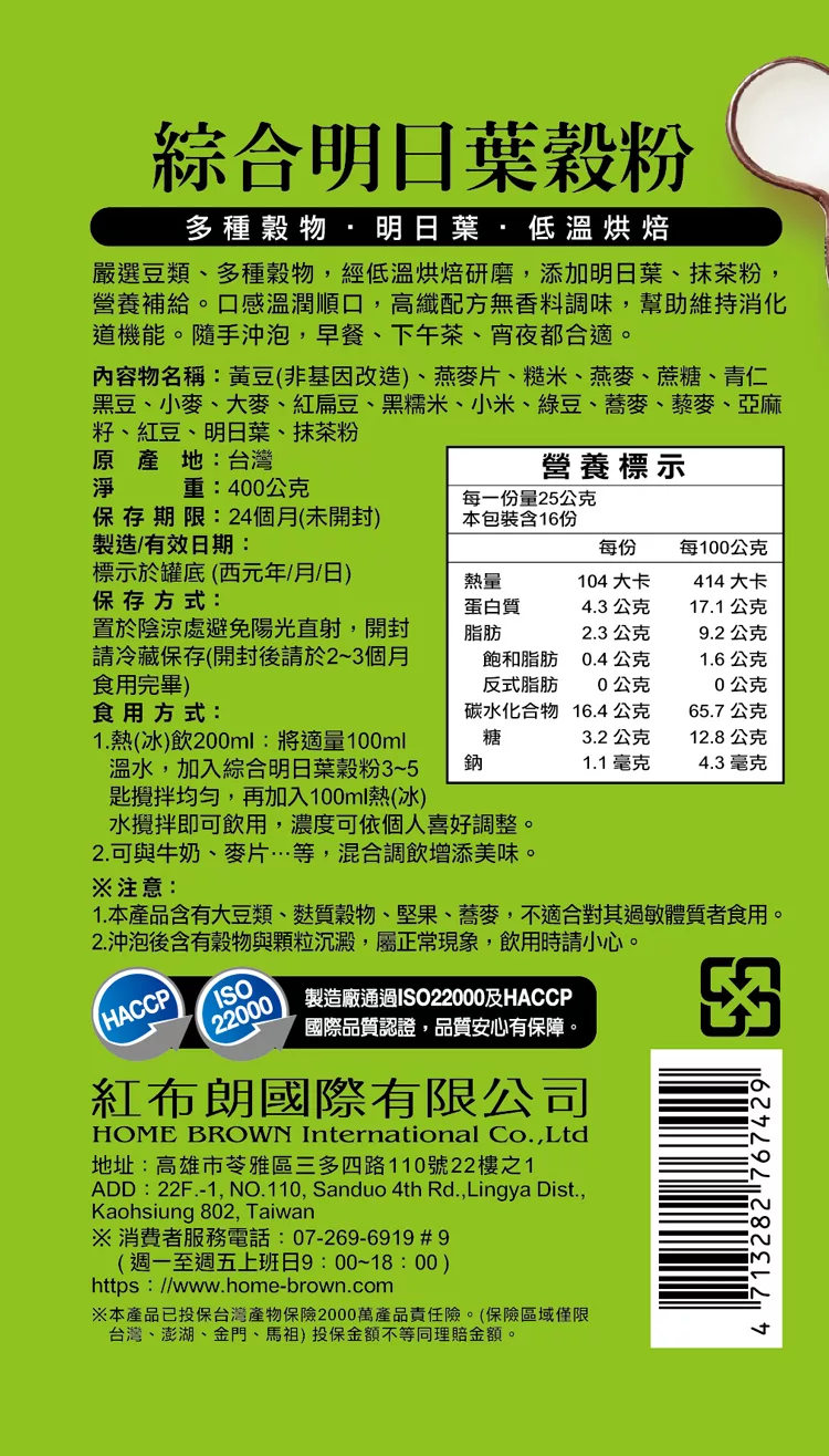 博客來-《紅布朗》綜合明日葉穀粉(400g 罐)訂購網址: https://www.books.com.tw/exep/assp.php/87926/products/N001246117?utm_source=87926&utm_medium=ap-books&utm_content=recommend&utm_campaign=ap-202002