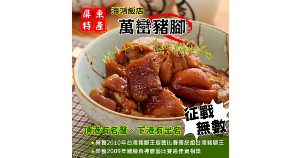商品說明: 《黑貓探險隊 跨店任選專區》【海鴻】萬巒豬腳(1斤9兩)(恕不指定到貨日)