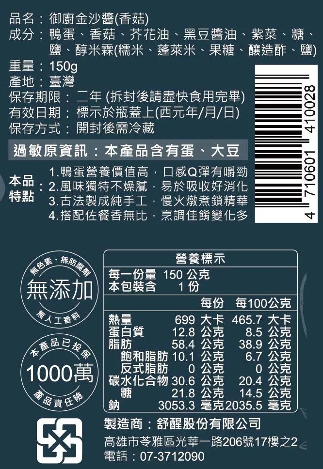 網購美食名店熱銷推薦-【日舒醒】御廚金沙醬 – 香菇(150g)最多人推薦購買