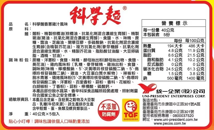 博客來-科學麵 – 香蔥雞汁風味五合一(40包 箱)訂購網址: https://www.books.com.tw/exep/assp.php/87926/products/N001246958?utm_source=87926&utm_medium=ap-books&utm_content=recommend&utm_campaign=ap-202002